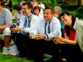 Najwyższa wysokość na Dolnym Śląsku, na której przyszło nam zagrać to 1400 m npm. Już tylko bluesmani grali wyżej, bo na Śnieżce. Ale zdobedziemy ją na pewno w tym roku. Dzień św. Wawrzyńca zawsze jest bardzo napompowany poprzez udział vipów. Byli tu nie raz prezydenci Czech, Polski, a tym razem przywódcy województwa, dekanatu oraz politycy. Na pocieszenie sfotografowali się z nami łaskawie w drodze powrotnej z upragnionej przez nas Śnieżki. I tak wspinamy się w tym dniu coraz wyżej: w 2012 w Strzesze Akademickiej, w 2013 w Domu Śląskim, a w 2014 na Śnieżce.