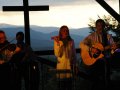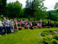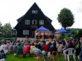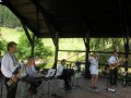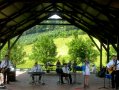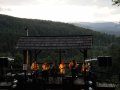 Tak jak i w zeszłym roku, karkonoska atmosfera, cudowne widoki i wierni, życzliwi słuchacze sprawiły, że zagrało się nam lekko, swobodnie i nie przeszkadzały strzały z aparatury, słońce grzejące po strunach czy zmienne poziomy głośności np. skrzypiec, gitary. Tadziu nagłośnił wszystko stosownie do miejsca, gdzie zachełmiańskie duszki nadstawiały ciekawie uszu, odnajdując w muzyce echo z ich przedwojennych wcieleń, a dźwięk odbijał się od zboczy, spływając miękko i wyraźnie na położoną niżej większą część wioski.