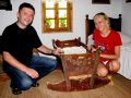 My przymierzyliśmy się do pięknej sudeckiej izby, suszarni ziół, a Ola od razu czemuś wypatrzyła stylową kołyskę.